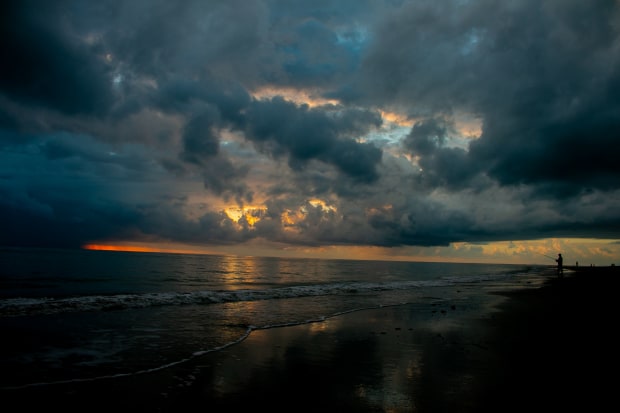 I took this picture as I walked along Port Douglas beach, Qld, as the sun came up over the ocean. I just loved how the clouds formed such beautiful patterns and how the sun glistened over the water. I also happened to capture a man fishing in the ocean too at that very moment.
