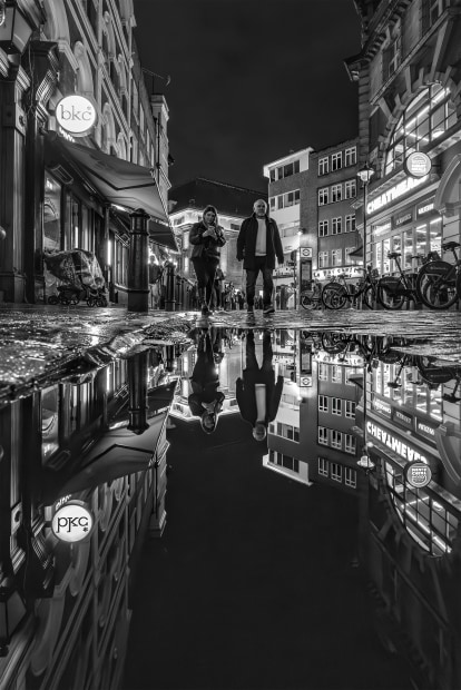 This photo was taken in the West End of London just as the local theatres were empting and patrons were heading home or to their next stop. It had been raining and I thought the reflection in this kerbside puddle offered me a new way of seeing this part of London’s nightlife.