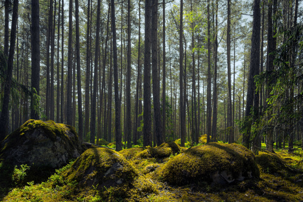 A small glade in Estonia's Lahemaa National Park gave way to a tumbling of rocks beside the walking track. The mossy covering provided an undulating terrain of greenery that was beset by warm, dappled sunlight and harsh, veiling shadows.