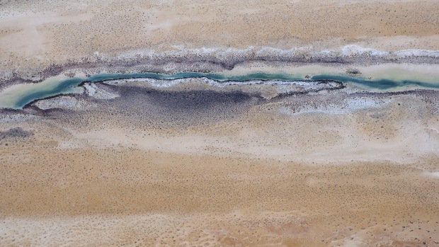Like a can of paint has been spilled, leaving it trail across the land.