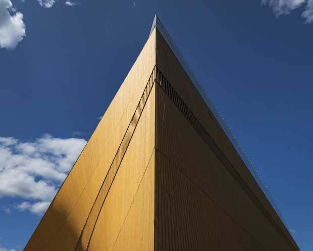 Helsinki Central Library Oodi (Ode in Swedish) is a three-story public library in Helsinki. The façade is made of spruce, which softens the building's architecture. The south-west corner is sharper than the rest, giving a nice shadow on the eastern side later in the day. The western side is curved, bending under the building where the Citizens' Balcony sits with great views over Helsinki. Well worth a visit when in Helsinki.