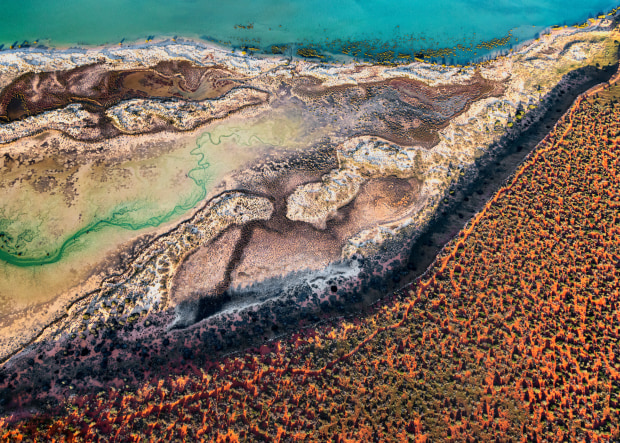 This image was taken in Gutharraguda (Shark Bay) from a Cessna with the doors open. Aerial images enable us to explore the patterns and textures that have been created by the wind, the rain and the ocean in a way that is completely unique. It’s hard to beat nature’s handiwork. All we can do is stare at it in awe.