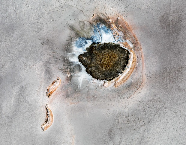The salt deposits of Lake Eyre leave some interesting shapes. Shot from a small plane