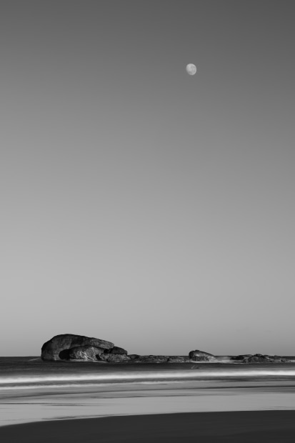 Surfing zen at Readgate Beach, near Margaret River, Western Australia. The moon high in the sky in the early morning light. For some, surfing is a spiritual experience, and riding a wave is a moment of zen, no seperation, at one with the wave. And so it can be with photography. A moment when we become one with the environment, no photographer looking at a scene; just moments in universal time.