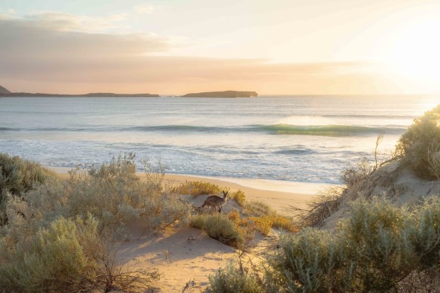 Kangaroo spotted on South Australian beach at sunset
