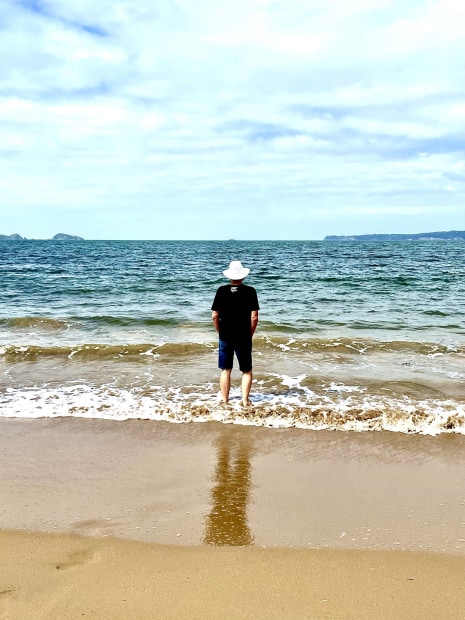iPhones pic of a chap quietly contemplating the sea at Surf Beach NSW