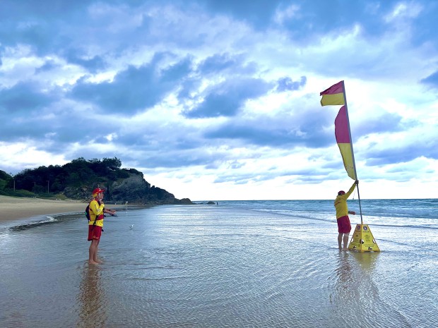 Gold Coast Life Guards packing up their flags at the end of a long Summer day.