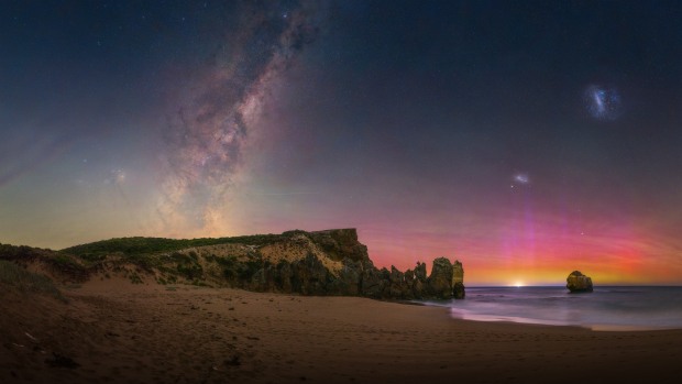 This image was captured along the Great Ocean Road as the Milky Way began to rise above the coastal cliffs. The sky was tracked to preserve detail in the galactic core while maintaining a natural balance with the landscape. Along the horizon, a faint aurora is visible, adding a soft band of colour beneath the stars. The first light of dawn begins to glow over the ocean, creating a gradual transition from night to morning. The scene brings together the rugged coastline, the rising Milky Way, and subtle auroral activity in a single moment, highlighting the dynamic nature of the night sky over southern Australia.