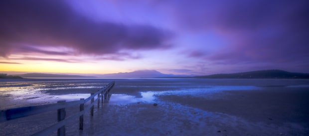 a soft pastel skies and hazy mountains creating a peaceful, dreamy atmosphere.
