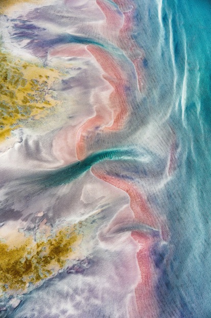 Aerial shot taken over Shark Bay WA. Different colours pictured in the waters