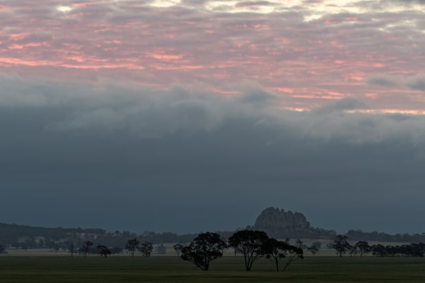 Two layers of cloud at sunset provide an interesting combination of colours over Mitre Rock in western Victoria.