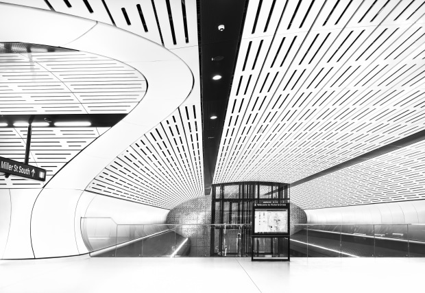 The metro stations provide beautiful lines and curves, which stand out more in a black and white composition.