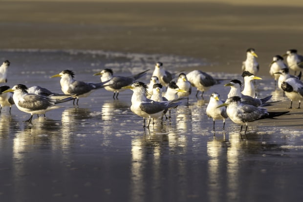 Dawn Gathering of Crested Tern's on Seventy-Five Mile Beach K'Gari. (Fraser Island)