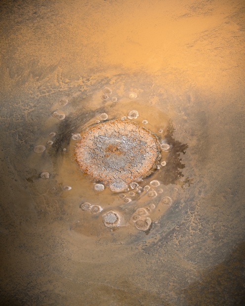 Salt formations radiate from a central core, evoking creation, erosion and the delicate balance of water and earth.