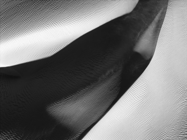 A topdown view of untouched dunes with the setting sun creating beautiful contrast, depth and texture. Taken in Western Australia.