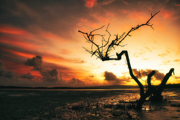 Captured early morning along the foreshore, in Tin Can Bay Qld Aus The was bright with orange and yellow a dawning the darkened sky and shimmering along the empty bay. Canon 90D f/4.5 1/60 ISO 100