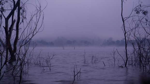 Evening mist in late autumn gave an eerie colour over Lake Eildon.