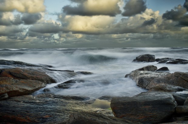 The remnants of storm clouds at dawn and a soft long exposure on the ocean creates the perfect contrast to the hard textures of the foreground and granite rocks at this beach near Margaret River, Western Australia.
