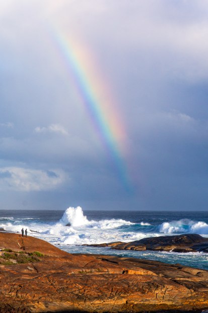 Two fishermen trying their luck fishing off the rocks along the coast of Denmark WA. Not sure if they caught any fish but I was lucky to capture this.