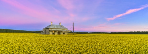 Photographed in regional Victoria, Australia, 2025. A weathered farmhouse rests in bloom, expressing endurance, solitude and the quiet passage of time.