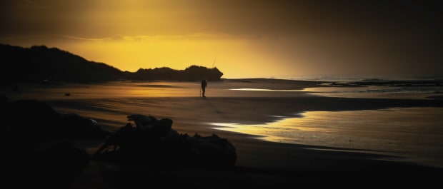 Taken as the sun was breaking the day on Waiinu beach, New Zealand. Up early to catch the sun and the fish on a beautiful warm summers morning.