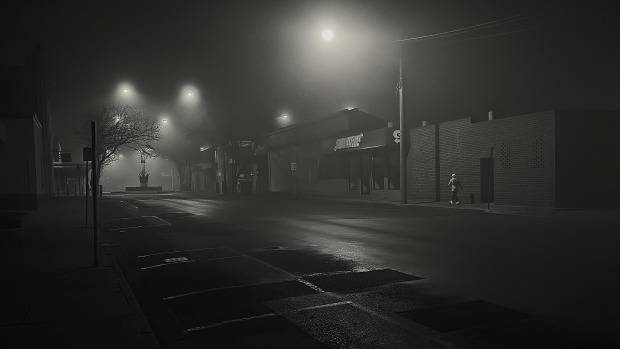 Kyabram street scene taken one morning last winter while out walking the dog. The effect of the fog and street lighting one the street provides a contrast in light and shade on opposite sides of the street