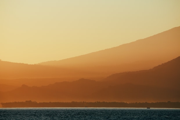 Walking out to the beach on Gili Air as I sat to watch the sunrise hit the mountains like a painting across from me. There it was a beautiful golden hue.