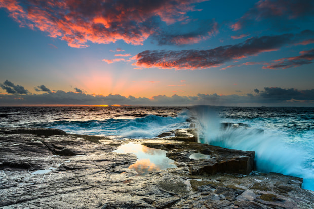 A somewhat underwhelming sunrise at Boat Harbour NSW provided just a few minutes of colour. The swell was moderate and I liked how this shot captured the variety of water textures. A few minutes later I was well soaked by a random wave so spent the rest of the morning drying off my gear