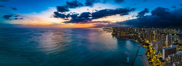 The boats line up off Waikiki to catch the sunset every evening.