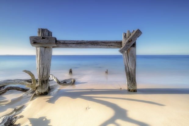 Bushwalking through the Point Nepean Park the track led me to a beach which was fairly deserted and much to my delight I saw this old jetty with old driftwood beside it. I discovered it was once a cattle quarantine jetty. It had character about it so I had to get a daytime shot with the sea in the background with the waves were lapping just at the old jetty.