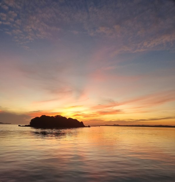 Sunrise from behind Dead-Man Island, Torres Strait, Queensland, Australia