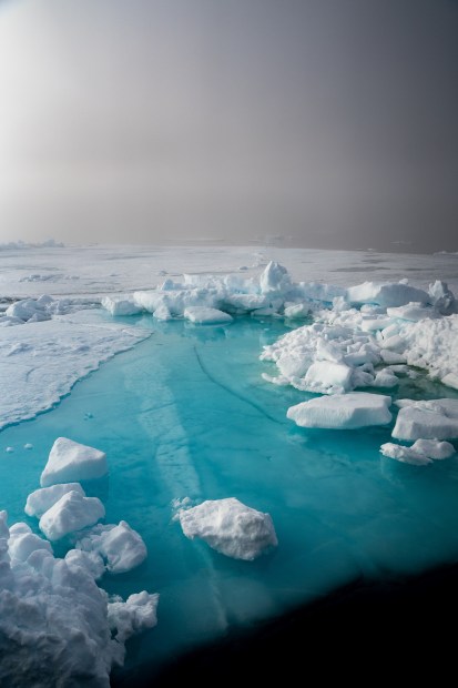 I was working onboard a very small ship high up above the Arctic Circle. Over there, conditions are rough, the weather is unforgiving, yet bewitching. In this image, I wanted to translate this impression of immensity and otherworldliness which bewildered my senses at the time.