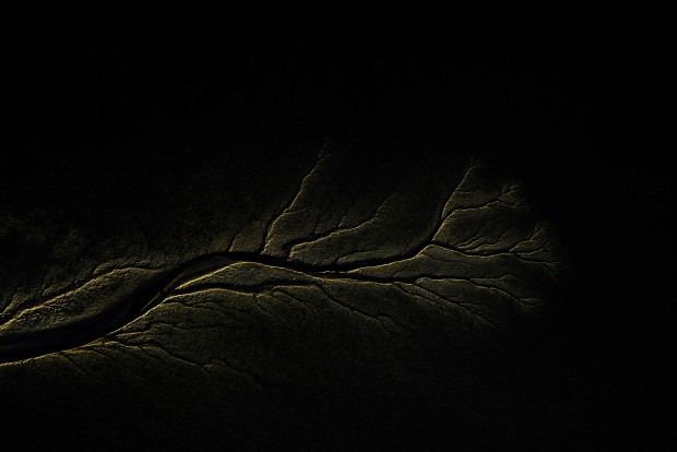 At the end of my Kimberley adventure mid last year, I took to the air in a little Cessna, with door off, for an incredible sunrise photo shoot along the coastline around Broome. We firstly headed south skirting the shoreline of Roebuck Bay. The morning tide was way out, so a lot of stunning unique patterns and textures were evident in the sandbed and as the morning light struck, the photo opportunities exploded into life. In this imae the morning's first light hits the bay, exploding a small tidal rivulet to life. Sort of takes your breath away at 1000ft up.