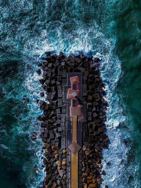 Top down view of the Gold Coast Spit when the ocean was feeling very ferocious.