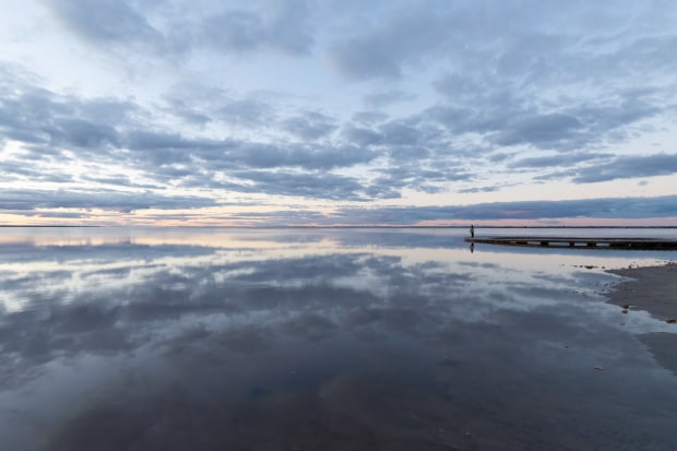 Captured in Lake Tyrell, Victoria and displays the peace and tranquility of the location. The inclusion of a human for scale highlights the insignificance of humans in the natural world.