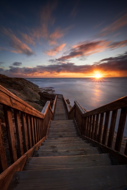 The iconic staircase at Southport which offers incredible views along the South Australian coastline is popular among photographers from all over Australia, who come to capture a sunset here. You can't really go wrong at this location; the stairs guarantee a nice composition.