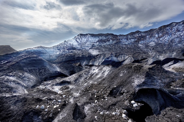 Katla is one of the most active and feared subglacial volcanos, the ice cave is also one of the most visited attractions Iceland has, the beauty of going into an ice cave bit also a active volcano is thrilling and amazing. While the experience was incredible the cave its self was a slight let down, believing it to be bigger and being able to spend more time exploring the cave it was a quick visit, but the landscape outside the cave was truly incredible, seeing all the black ash on top of this glacier as we are hiking across it, you could mistake it for normal ground, but hiding beneath is truly something otherworldly, I believe this photo captures that. the contrast from the blue hued ice and the black ash caked on layer after layer, seeing how thick and stack the contrast was it emphasised how many times this volcano has erupted, that it covers the entire glacier you have a sometimes you can see or tell that what you standing on is a glacier hundreds of years old maybe even thousands. It was truly a pleasure to visit such an amazing landscape