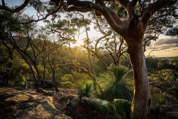 Sometimes it only takes a simple shift in perspective to see something familiar in a new light. The Koolewong Track is the shortest walk in Ku-Ring-Gai Chase National Park…less than 2km return. It is also one of the most beautiful – a ‘greatest hits’ of Australian flora and fauna, and we have walked it countless times. On this stroll, I sat and watched an echidna slowly cross the track; black cockatoos soared overhead; and a wallaby crashed loudly through the undergrowth. At the end of the trail is a viewing platform with stunning views across to Lion Island and, beyond the fence, untold treasures. This time, temptation got the better of me, and I ventured beyond said fence…to find layered rock shelves that led down to shelters, soaring red gums, a stunning sunset and no footprints except my own.