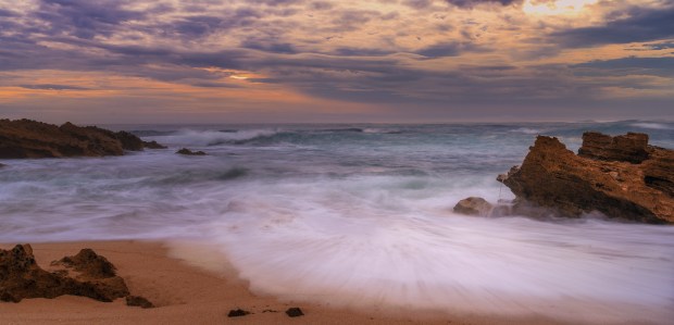 A seascape single image. I waited for the receding wave to occur before pressing the shutter to leave a nice trail. The tricky part was getting the right shutter speed, to allow some texture in the waves.