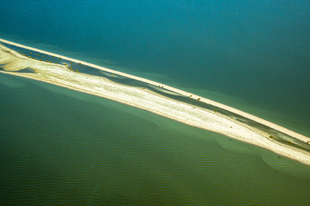 Image taken from the window of a light plane during a scenic flight over Lake Eyre. A small strip of high ground not yet covered by flood waters creating a beachy looking peninsula. Canon 5D Mk III, Canon 24-105mm lens @ 65mm f/14, ISO-100 1/160sec, -0.3 Step exposure bias. PP Lightroom Classic & Photoshop.
