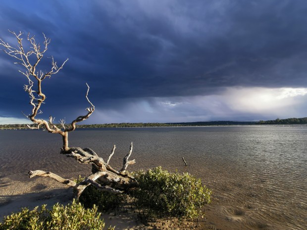 An approaching storm from out at sea threatens my daily walk around Merimbula Lake.