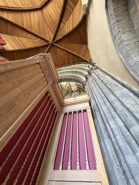 St Davids Cathedral Wales -looking at ceiling from one section to another