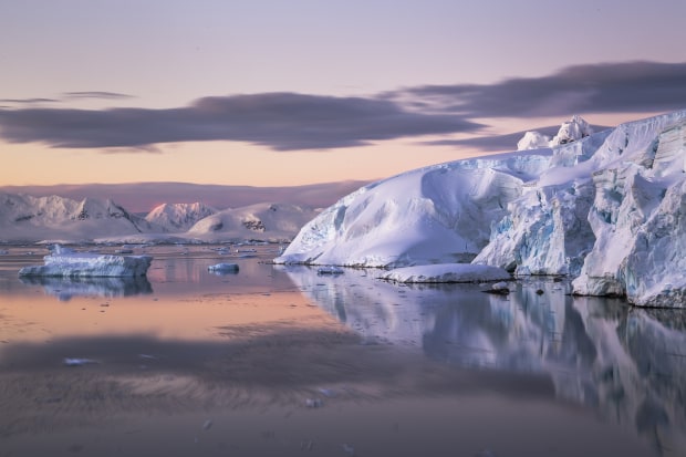 In the Antarctic summer the sun sets around midnight and dawn breaks a couple of hours later. It never really gets dark. This photo captures the glowing light and colour in an otherwise fairly neutral landscape during this small bracket of time.