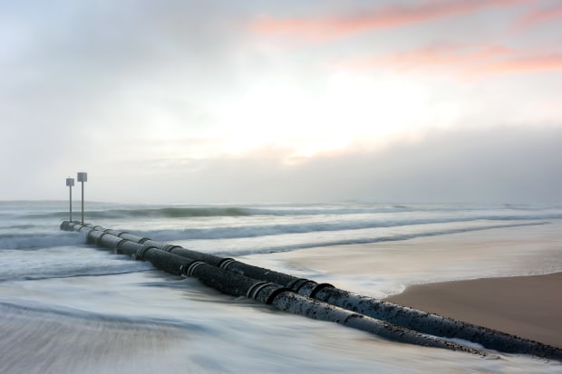 A misty morning on the beach at Manly created a surreal light as the surf gently washed in around the old pipeline exposed at low tide