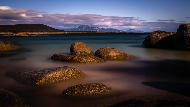 This photo was taken in the early morning looking across Sawyer's Bay toward the Strzelecki Peaks on Flinders Island.