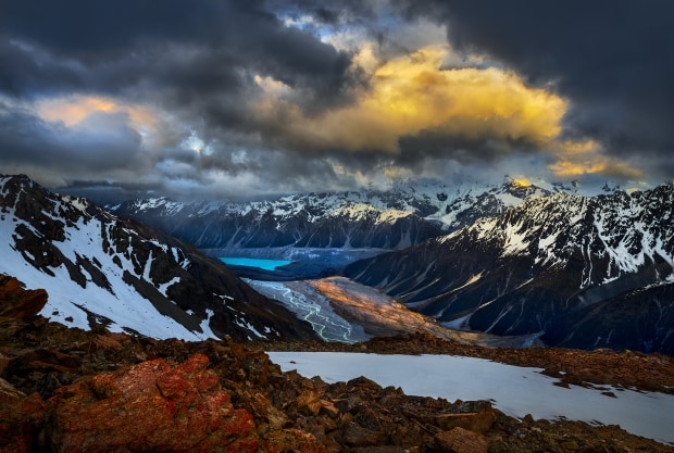 Sunrise on top of the New Zealand Alps near Mt Cook