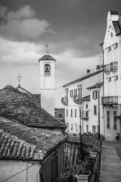 Murazzano is a hilltop town in Piedmont, Italy, about 90km south of Turin. With great views of the Alps on a good day, even on a bad day, it has great character and a wonderful rhythm to its architecture.