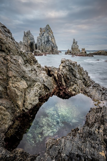 I been many a time to Camel Rock in Bermagui but only recently found this composition. It works best when the tide is high enough to provide good flow in the scene but low enough to safely access the ledge the rockpool sits in.