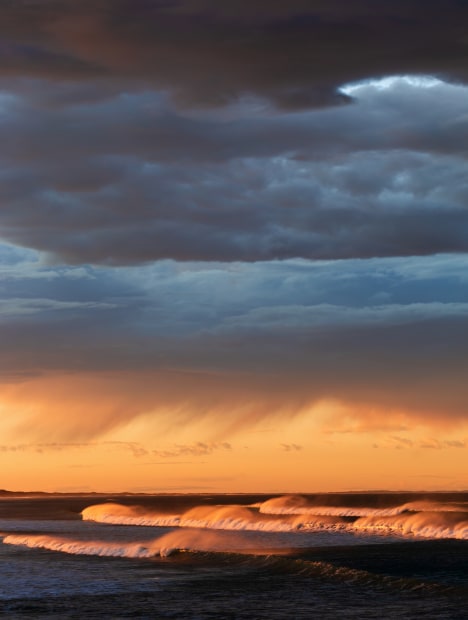 “Offshore” It was a cold winter morning on the Fleurieu Peninsula in South Australia. The wind was blowing strong from the north, “offshore”, creating beautiful clouds of seaspray as the waves crashed into the shore. For a few minutes, as the sun rose, the clouds cleared on the lower horizon letting the light perfectly illuminate just a section of the ocean, highlighting the texture of the seaspray and the white water of the breaking waves.
