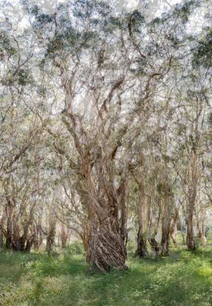 A forest of mystical paperbark trees captured in the morning sunlight. Usually isolated by a lagoon which had subsided I was able to walk amongst these trees. I focused on one particularly majestic tree which I took about 30 photos of as I walked around it, then processed in the Pep Ventosa style.